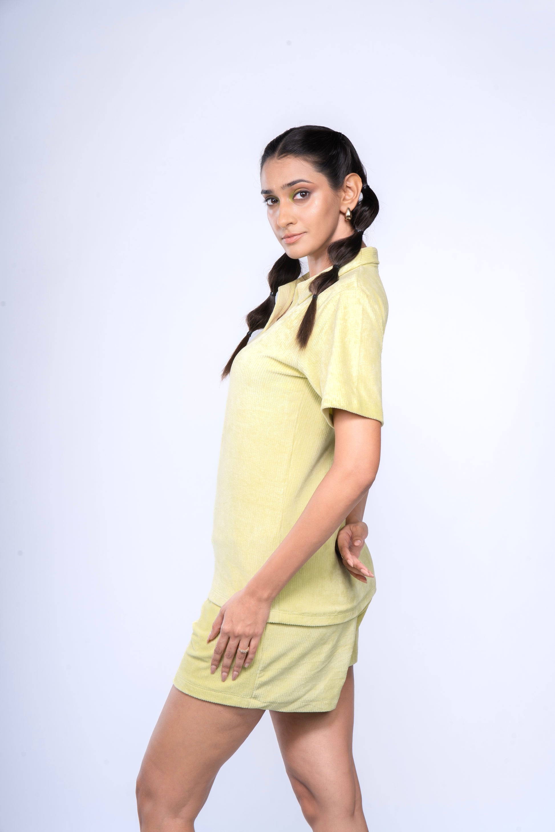 This Ribbed Velour Co Ords Set offers comfort, style, and versatility in one. Made with high-quality ribbed velour material, it provides a soft and luxurious feel. The set includes a matching top and bottom, perfect for effortlessly coordinating your outfit. Elevate your wardrobe with this must-have set.
